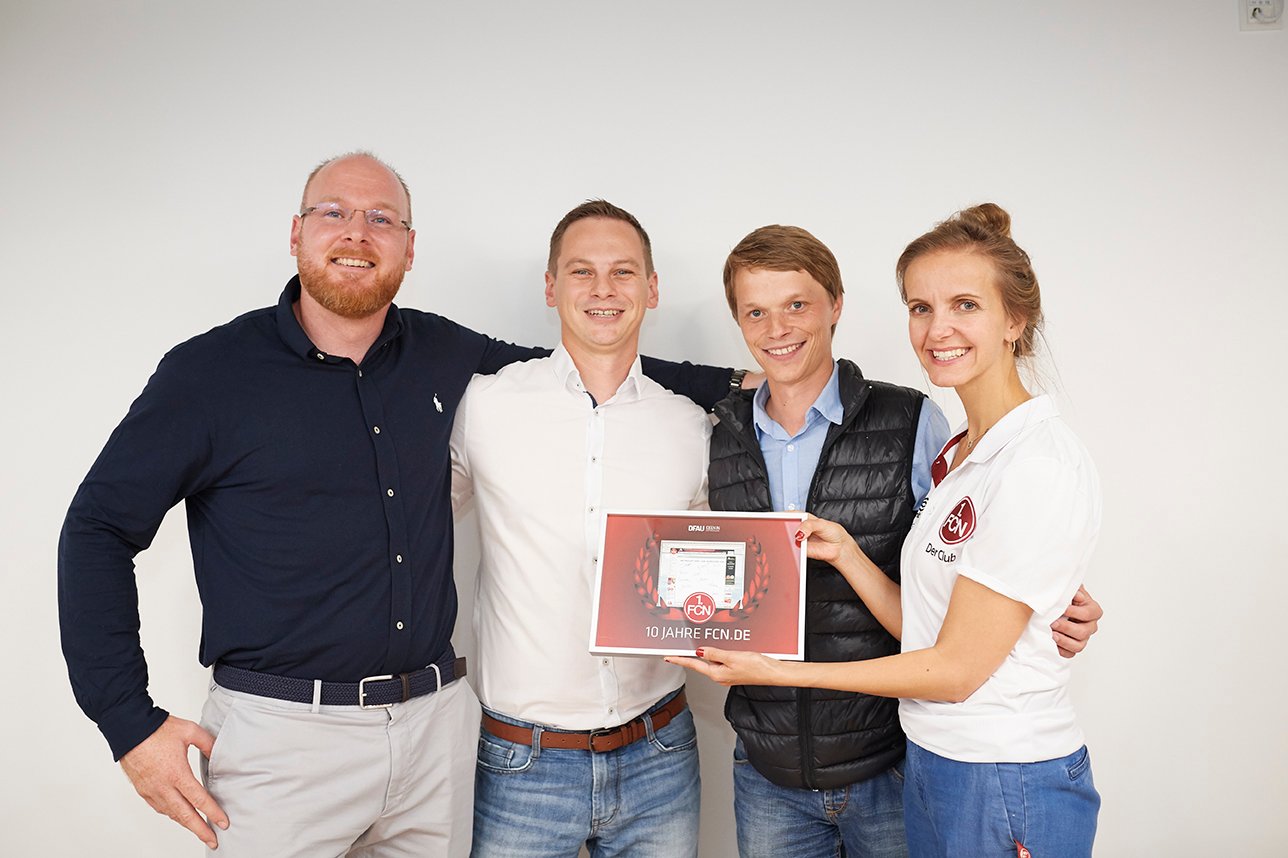 Auch der 1. FC Nürnberg feierte mit, dessen Website www.fcn.de DFAU seit nunmehr zehn Jahren betreut und mit der Übergabe einer symbolischen Urkunde anlässlich des Partnerschaftsjubiläums dokumentierte. Zudem waren Kunden aus der Tourismusbranche wie SKR und For Family Reisen der Einladung gefolgt.